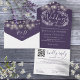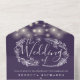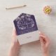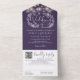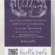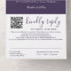 All in one wedding invitation featuring pretty string lights, hand-drawn floral garland and chic typography on a purple background. The invitation includes a perforated RSVP card with your wedding website QR code and details. Designed by Thisisnotme©