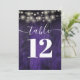 These purple string lights rustic barn wood boho table numbers are perfect for all celebrations. Designed by Thisisnotme©