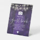 Purple String Lights Rustic Wood Photo Guest Book Pedestal Sign