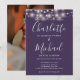 Purple String Lights Script Photo Wedding Invitation