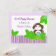 Une jolie bande violette au fond de l'invitation du baby shower. Des plantes de jungle entourent ce mignon singe d'un arc-en-cheveux rose. Customisez avec toutes vos informations personnelles comme vous le souhaitez.