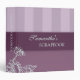 An elegant custom name scrapbook binder perfect for getting organized and keeping cherished memories, a great gift for the scrapbooker in your life, with delicate flower and stripes pattern in modern purple and light blue.