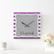 Purple Stripes, Striped Pattern, Lines, Your Name Square Wall Clock