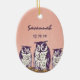 Purple Stylized Geometric Owl Family Ceramic Ornament