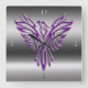 Purple stylized Phoenix Rising on metallic-look Square Wall Clock