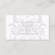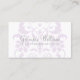 Simple with professional elegance describes this sophisticated Subtle Damask Business Card with a light lavender damask flourish background. This trendy and modern profile card is perfect for an upscale boutique or a creative field such as interior design and can be easily customized with your business details. For more customization options, click on the Customize It button.