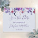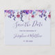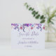 These save the date cards feature watercolor purple succulents and plants. They are part of a collection which includes a full range of matching wedding invitations and stationery such as reply cards, information cards, address labels, stickers, programs and much more. Please visit the collection pages in our store to see the full range of items that you can personalize for your wedding.