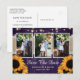 These purple rustic wedding save the date photo postcards featuring burlap, lace and barn wood background with sunflowers are ideal for a purple rustic wedding party inspired by sunflowers.