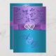 Purple, Teal Floral Hearts Monogram Wedding Invite
