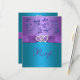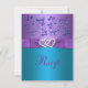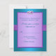 This pretty purple and turquoise blue floral wedding reply card has a purple PRINTED ribbon and a pair of PRINTED diamond jewels and FAUX glitter joined hearts on it that matches the wedding invitation shown below. The paper choice is customizable. If you require any other matching items, please email niteowlstudio@gmail.com.