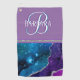 Purple Teal Glittery Silver Monogram First Name Golf Towel