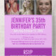 Bold simple graphic purple-pink tones and white photo template all-in-one 35th birthday invitation. Personalize this detachable milestone birthday invitation with your own birthday party event details, and three different photos of your birthday girl. Invite comes with a simple RSVP detachable reply card where you can also request a song to dance to or ask for any dietary or special requirements if required. Simple three photo side by side design for you to place your now and then photos. Other colours and matching items are available. © Original design by Sarah Trett for www.mylittleeden.com on Zazzle.