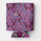 This can cooler has an art deco design of tulips from pentagons and trapezoids in different shades of purple.