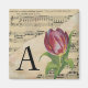 Botanical style purple and yellow tulip is partnered with vintage sheet music in a classic Victorian style. This decoupage inspired design is personalized with the monogram "A" over an aged parchment background.