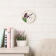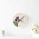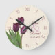 Three rich dark burgundy purple tulip flowers on a cream background with green leaves, and customizable names and date for an anniversary gift, particularly a ruby wedding. The clock has matching numbers in burgundy coloured Roman numerals. You can also replace the background image with a photograph of the happy couple.