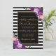 Watercolor Purple Ultra Violet Floral Gold and Black with Black & White Stripes Wedding Invitation Card - Striped Back