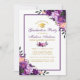 Aquarelle violet Ultra Violet et or Floral Graduation Party Invitation Card - Violet Frame - Purple Back