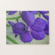 A close up photograph of beautiful purple vanda orchids printed on a puzzle.