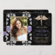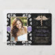 Add your photo or favourite picture to these elegant and formal black and white floral damask vet school graduation announcements and veterinary graduation invitations with a gold single snake caduceus and printed lavender purple stitched ribbon look design for the graduating veterinarian. Customize it to say whatever you want on the back and front of these dentistry graduate graduation announcements and invitations. Artwork © Chrissy H. Studios, LLC. All rights Reserved.