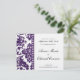 The combination of minimalist text and background with an intricate, shimmering, deep aubergine purple damask border sets this wedding design apart. The striking floral damask sweeps and curls lavishly up to a diamond-studded edge, beyond which is the save the date wording - completely customizable by you.