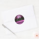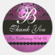 PURPLE VIOLET BLACK DAMASK MONOGRAM CLASSIC ROUND STICKER
