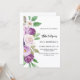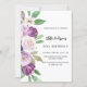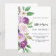 A violet, lavender watercolored background and an arch frame. Decorated with violet and purple watercolored flowers and greenery. Personalize and add your name and party details.