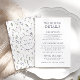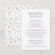 Sophisticated contemporary watercolor details card for a rustic wedding, showcasing an elegant delicate violet purple flower pattern. The card includes the bride and groom monogram on the back.