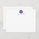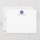 Purple Violet Script Monogram Circle Modern Elegant Girly Note Card