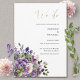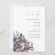 This gorgeous Wedding Invitation Suite features a watercolor floral bouquet in purple, violet, lilac and white. Botanical elements eucalyptus and greenery. Perfect for a boho modern wedding, this suite includes simple modern design and gold cursive script details.