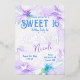 Invite guests to your Sweet 16 party with a beautiful purple and blue floral invitations. Floral lettering for your name can be easily modified. Wild flowers can be resized and repositioned along with your text. Botanical purple, blue, and silver colour palette is versatile for bat mitzvahs and quinceaneras. A dragonfly and butterfly is added for a finishing touch. Perfect for lilac, lavender, pastel colour themes!