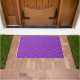 This doormat has a Boho design of purple and turquoise waves on a field of light purple.