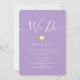 Ideal for your intimate minimony, this wedding invitation embraces modern sophistication with a contemporary white and pastel purple colour palette. The design exudes calm and elegance, while a delicate gold foil heart adds a touch of warmth and sweetness, symbolizing the enduring love you share with your partner. Crafted for a personalized, heartfelt ceremony, every element of this invitation speaks to the beauty of your unique love story, setting the tone for a celebration that’s as intimate and meaningful as your relationship.