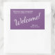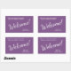 After a long day of driving or flying to your wedding, welcome your out of town guests with a welcome bag full of snacks, drinks and local souvenirs. This glossy purple Welcome sticker on the front of the welcome bag gives a charming touch.
