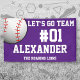 Cheer on your team with this Purple White Baseball Team Banner. Personalize with your athlete's number and name, and the name of the team. You can even change the message. Show off your team spirit this summer.