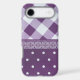 Elevate your phone’s style with this elegant purple and white chequered iPhone case, blending classic damask patterns with playful polka dots. The sophisticated gingham floral print adds a timeless charm, making it perfect for those who appreciate versatile and contemporary designs. Whether you're looking for a chic everyday accessory or a statement piece, this case offers both style and protection. A must-have for lovers of classic yet modern aesthetics.