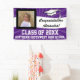 Grape purple and white high school or college colours. Big giant yard sign or indoor/outdoor banner, Congratulations to the graduate of the class of (your year). Customize this personalized yard banner sign with your graduate's photo, name, year and school or other custom text. Personalized outdoor or indoor graduation party sign banner with your graduate's year, name, high school. Spectacular way to congratulate the graduate and welcome family and guests to your graduation party .