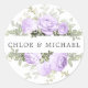 The wedding couple's names are surrounded by top and bottom borders of white hydrangea flowers and purple roses. There is a variety of leaves and branches that give it a very modern and chic vibe. These purple and white floral envelope seals will give your invitations, wedding favour boxes and thank you notes a very special touch. It coordinates with the Violette invitation collection.