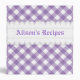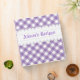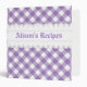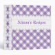 Purple, white gingham pattern with scalloped borders recipe custom binder featuring a retro diagonal gingham or vichy pattern in purple, white and white scalloped border with your text. This cute, girly design is perfect for a retro/vintage style cookbook for your kitchen.