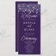 Commemorate your special day with our elegant Dark Purple and White Wedding Program! This exquisite piece of wedding stationery is not just a practical guide for your guests but a cherished keepsake that captures the magic of your love story. The dark purple background, adorned with hanging lights, creates an enchanting atmosphere that reflects the romance and joy of your union.