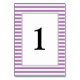 This “Purple/White Stripes Framed Table Number” creates a romantic atmosphere as your guests find their tables. Each card is clearly numbered, making it simple for your guests to locate their assigned tables, ensuring a smooth and organized event, order today!