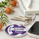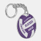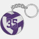 This team colours volleyball themed keychain for boys or girls features a realistic looking purple and white volleyball upon which you can customize the player's name, jersey number and court position, plus school or club name and mascot name in a varsity letter style font - by katz_d_zynes