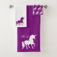 Purple White Unicorn Silhouette Personalized Kid Bath Towel Set