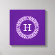 Purple Wht Greek Key Rnd Frame Initial Monogram Canvas Print