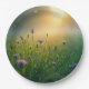 Sunlight bathes a morning meadow with purple wildflowers casting a serene and warm glow