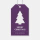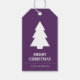 Elegant gift tags featuring a beautiful Christmas tree against a purple background.