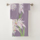 Purple with Pastel Pink Orchids Floral Bath Towel Set