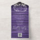 Purple Wood String Lights QR Code Floral Wedding All In One Invitation