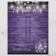 This stylish rustic wedding schedule-timeline featuring pretty string lights and mason jars can be personalized with your wedding details in chic white lettering on a purple wood panels background. Designed by Thisisnotme©