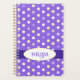 Cute polka dot name girls planner in purple white and yellow with a printed ribbon. Customize with the name of your choice, currently reads Melissa. Designed by Sarah Trett for www.mylittleeden.com