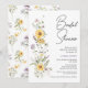 Sweet light purple and yellow wildflowers bridal shower invitation featuring a lovely wildflower arrangement and black text.